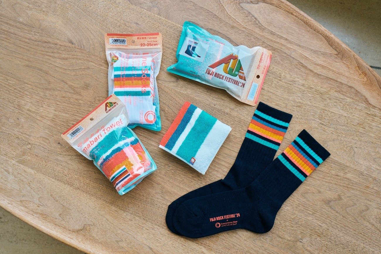 コラボするにあたり、2022年にフジロックに下見に行ったら、コンビニエンスウェアの靴下をみんな履いてくれていて。それを見たときに、「来年は絶対に自分たちのコラボアイテムで埋め尽くしたい」という気持ちが芽生え、どんどん情熱が加速していきました。いいプロジェクトになったと自負しています。